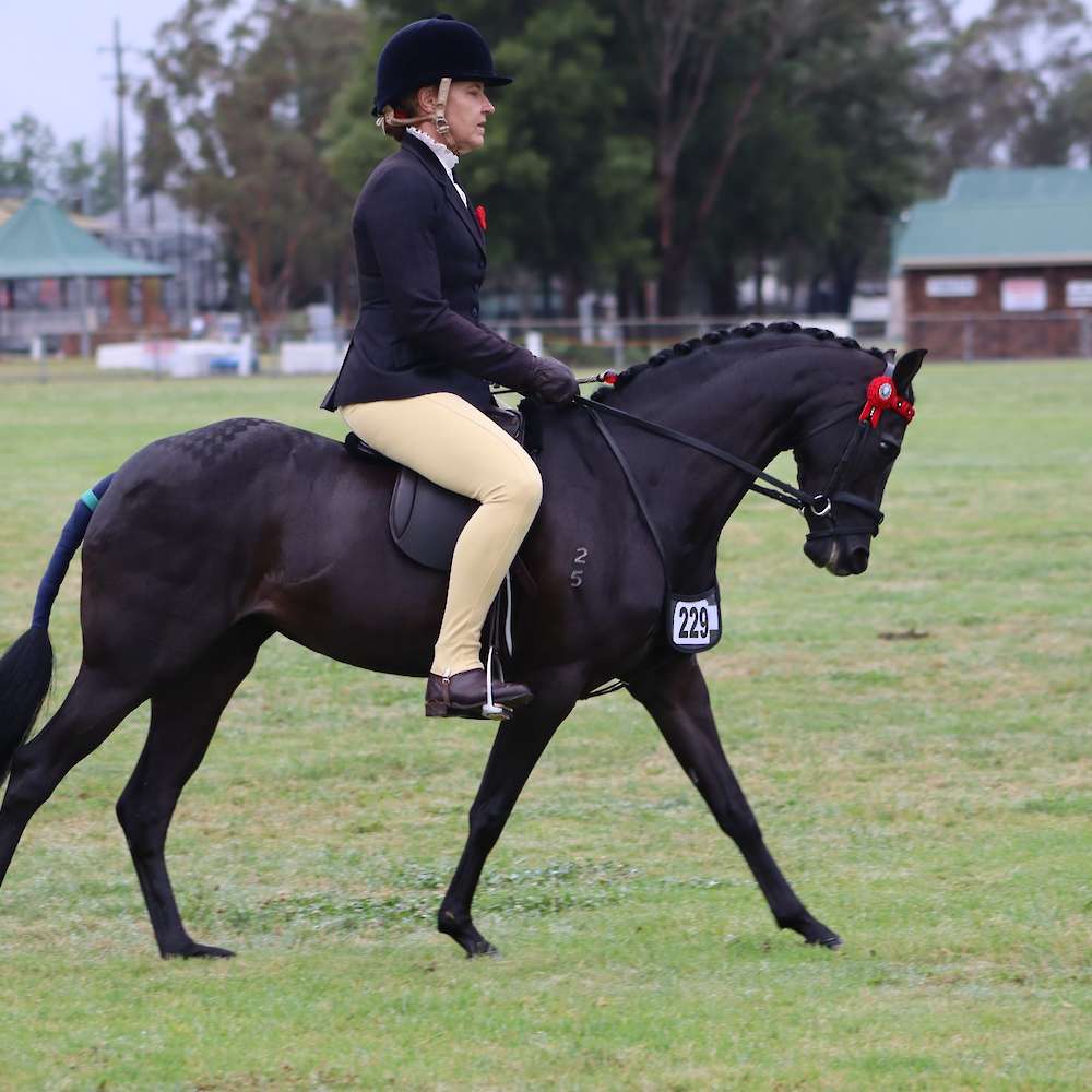 An extremely refined elegant pony she was lightly shown in-hand as a youngster with success including a number of Supreme Champion Riding Pony accolades and a win as a 3 year old at Sydney Royal. Broken in at 4 she was only shown for a season winning Her EA Newcomer class at HOTY, many agricultural show championships in the Large Pony Hack and Riding Pony ridden classes and a third in her Novice Pony Class at Sydney Royal before being scratched from her open.